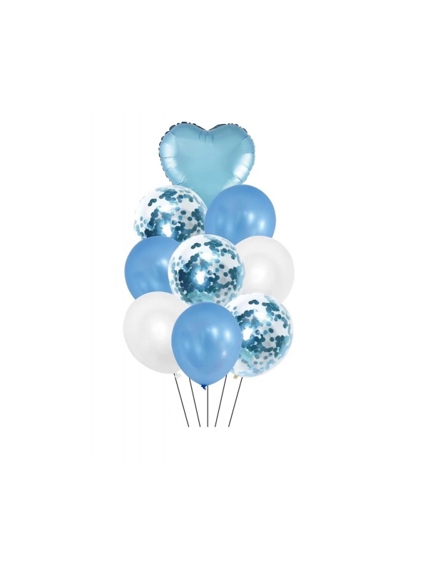 SET DE GLOBOS X 9 CELESTE CON SERPENTINA cantidad